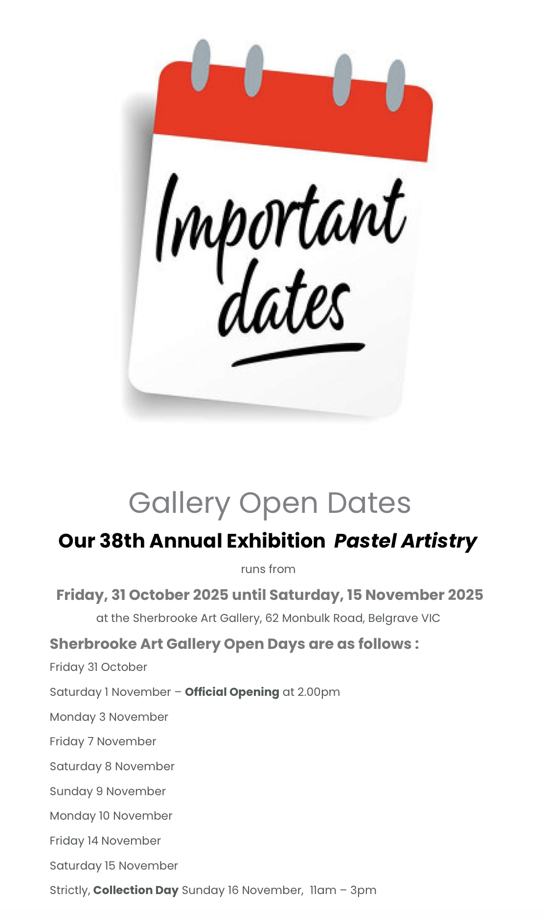 Our 38th Annual Exhibition is on at Sherbrooke Art Gallery, 62 Monbulk Road, Belgrave VIC 3160