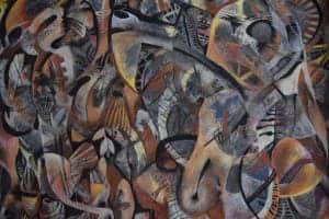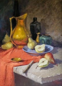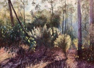 Judges Comments: This small compact work strikes the balance between the three dimensional illusion and its two dimensional possibilities. It demonstrates the ability to simplify complex forms into broad statements of decorative design and harmonious colour.