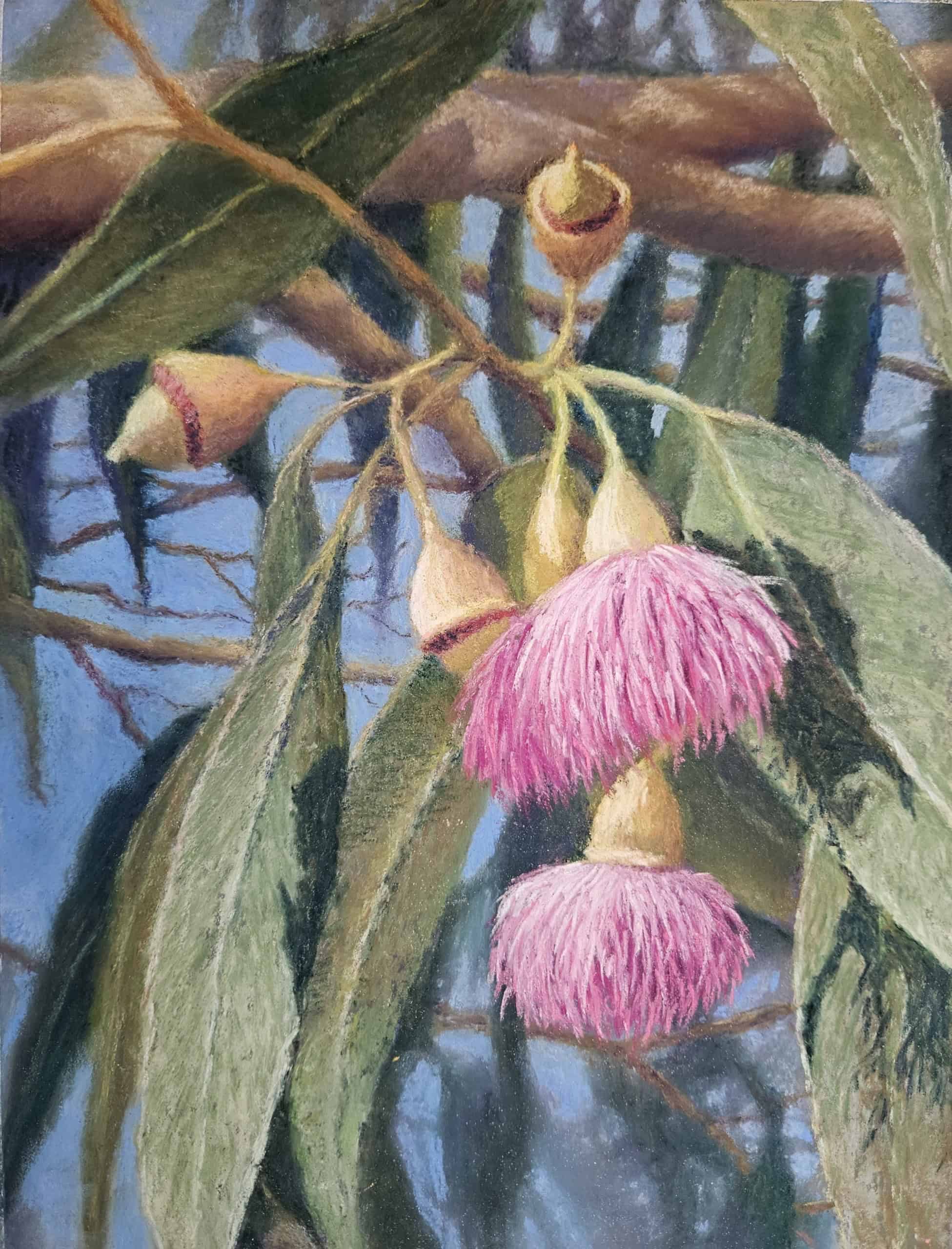 A convincing sense of depth and space is achieved with a direct pastel application and the chooks add a sentimental aspect.