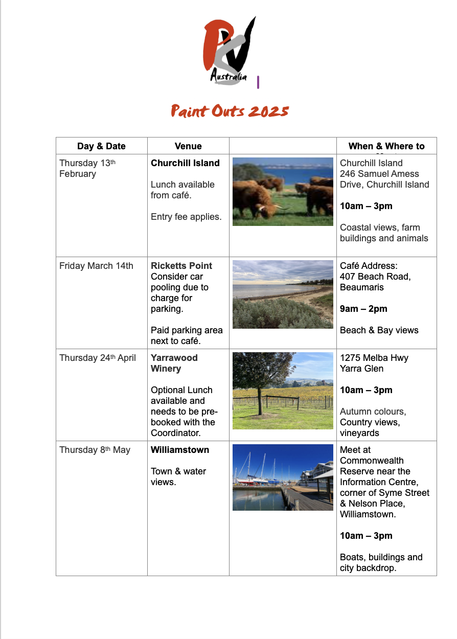 Email paintout@vicpastel.com.au to let us know you would like to be on our Paint Out mailing list.