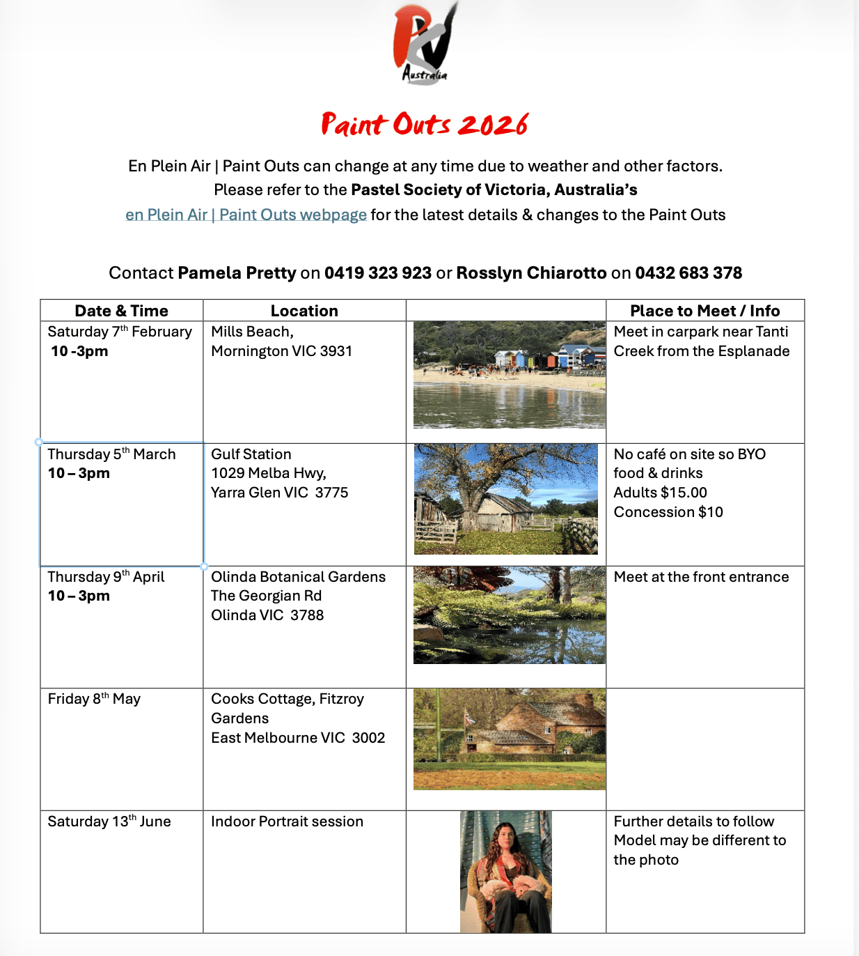Email paintout@vicpastel.com.au to let us know you would like to be on our Paint Out mailing list.